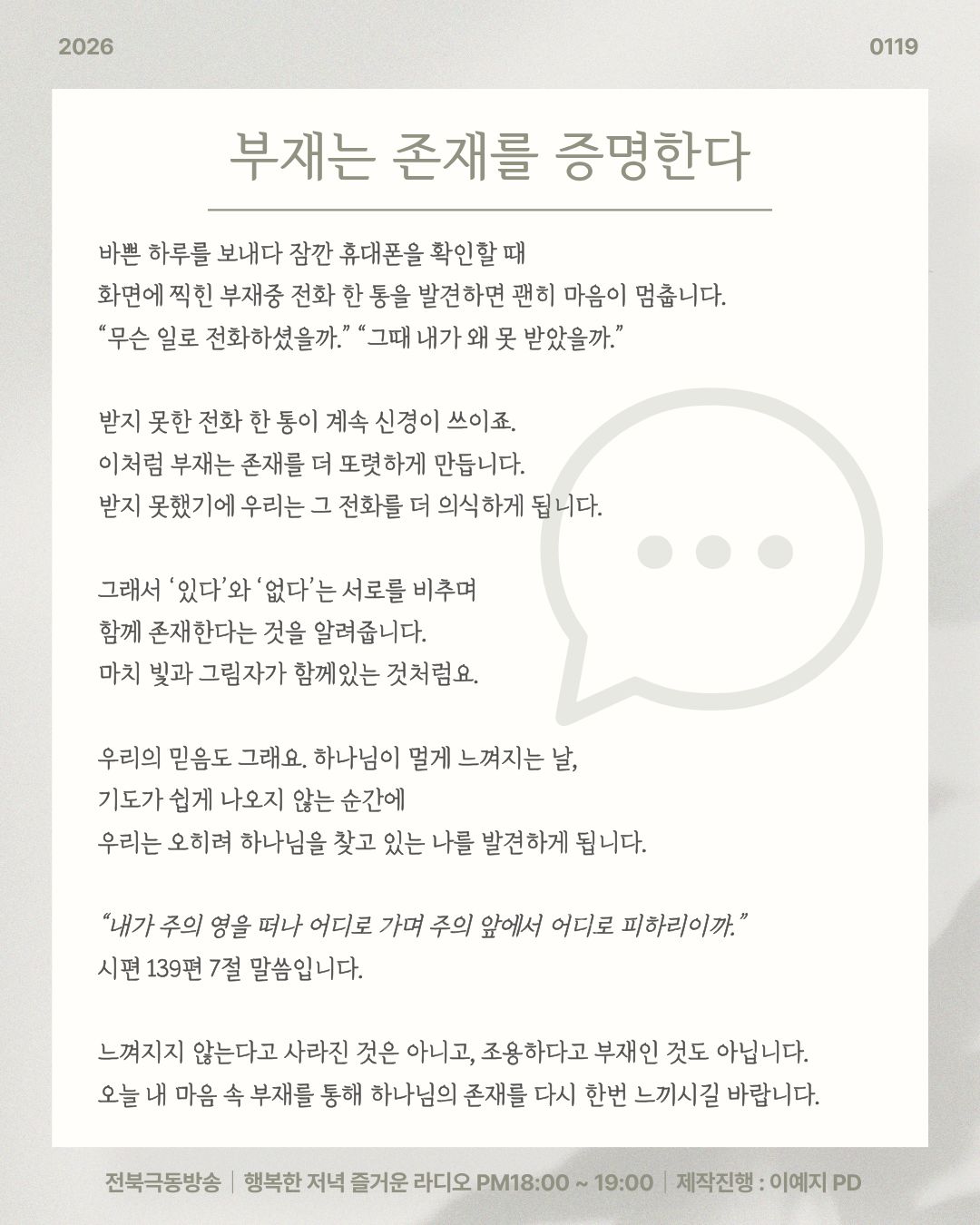 2026년 1월 19일 오프닝 [ 부재는 존재를 증명한다 ]